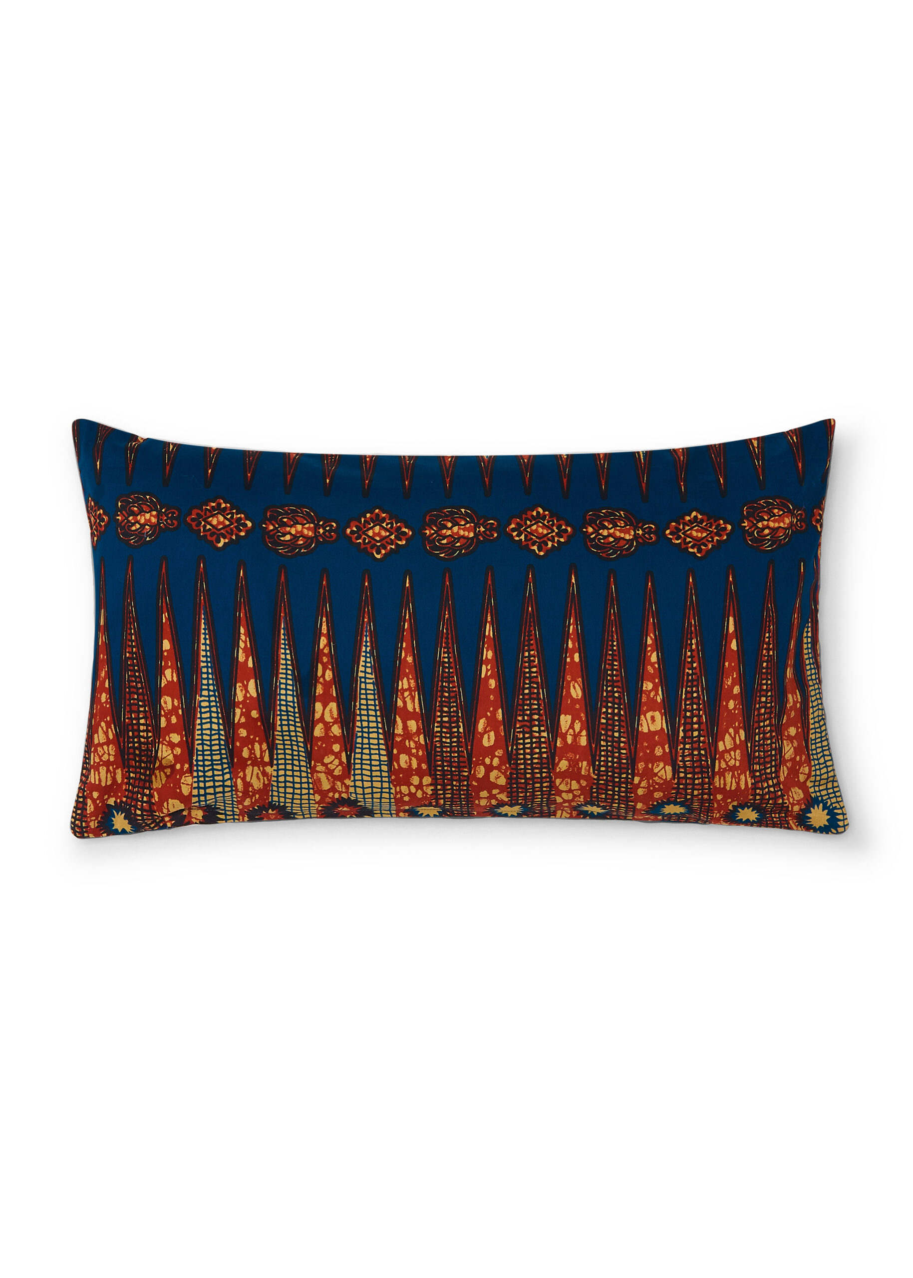 - Print and Colour: A striking combination of navy blue and earthy tones with a bold geometric pattern of elongated triangles and intricate motifs adds a dynamic and artistic flair.