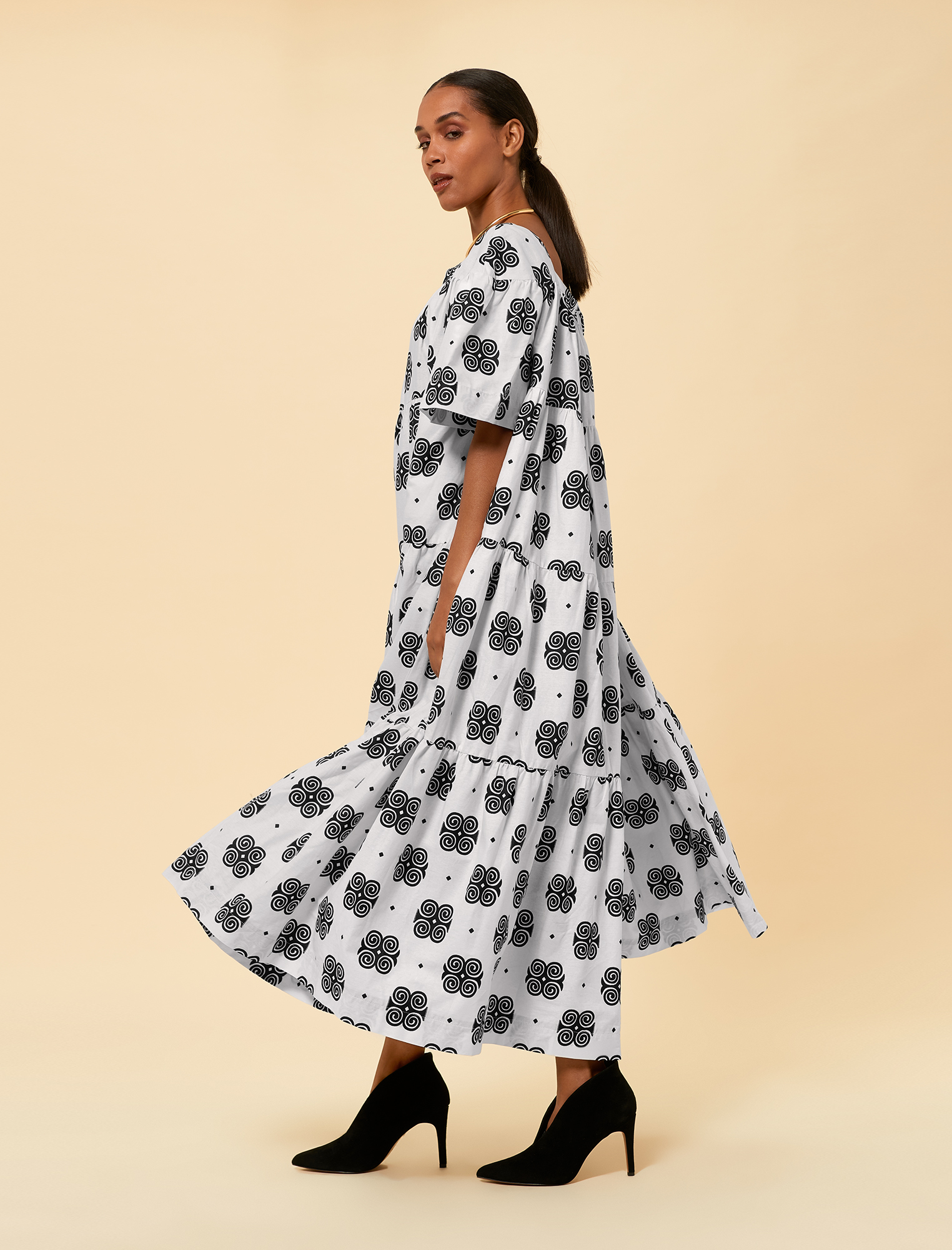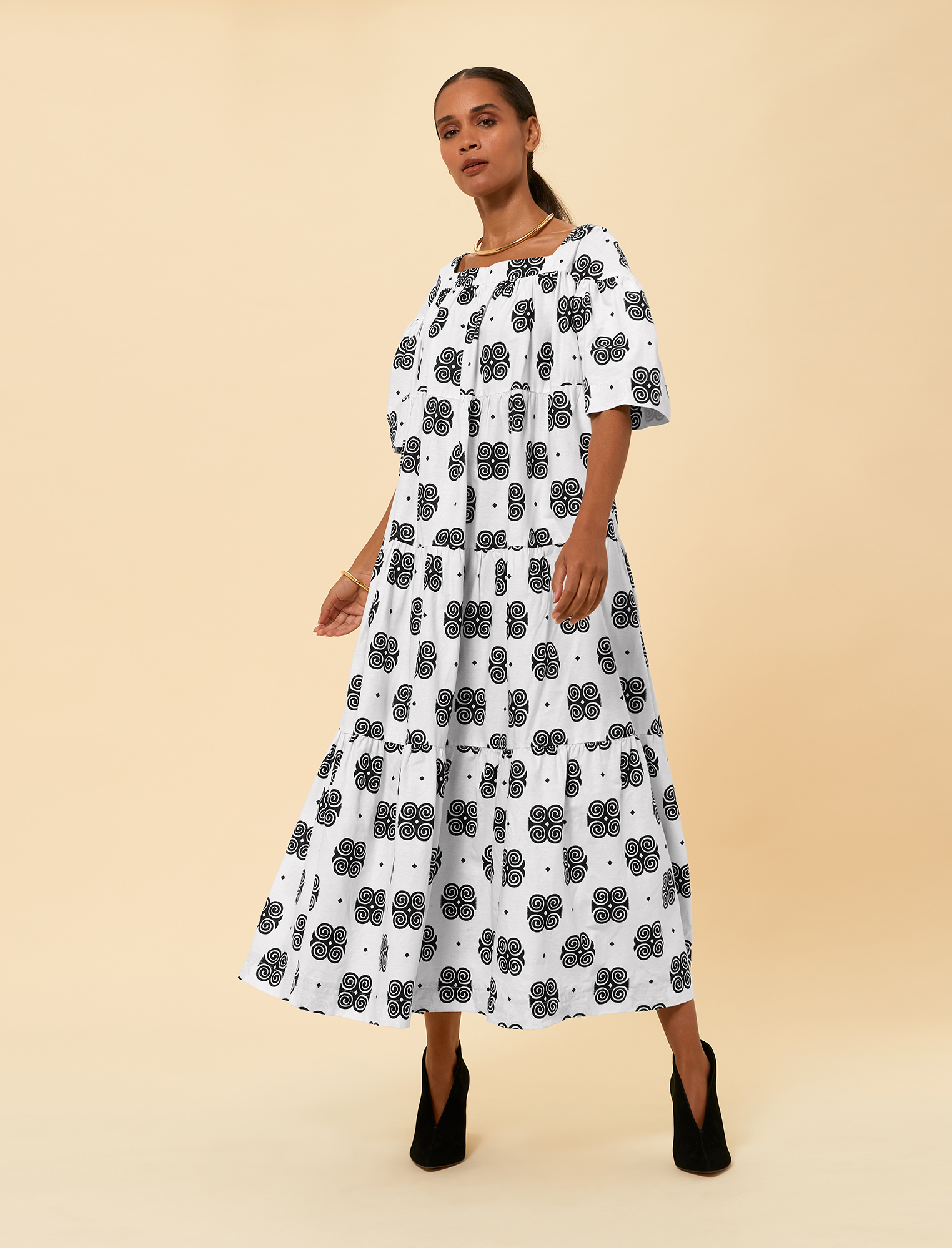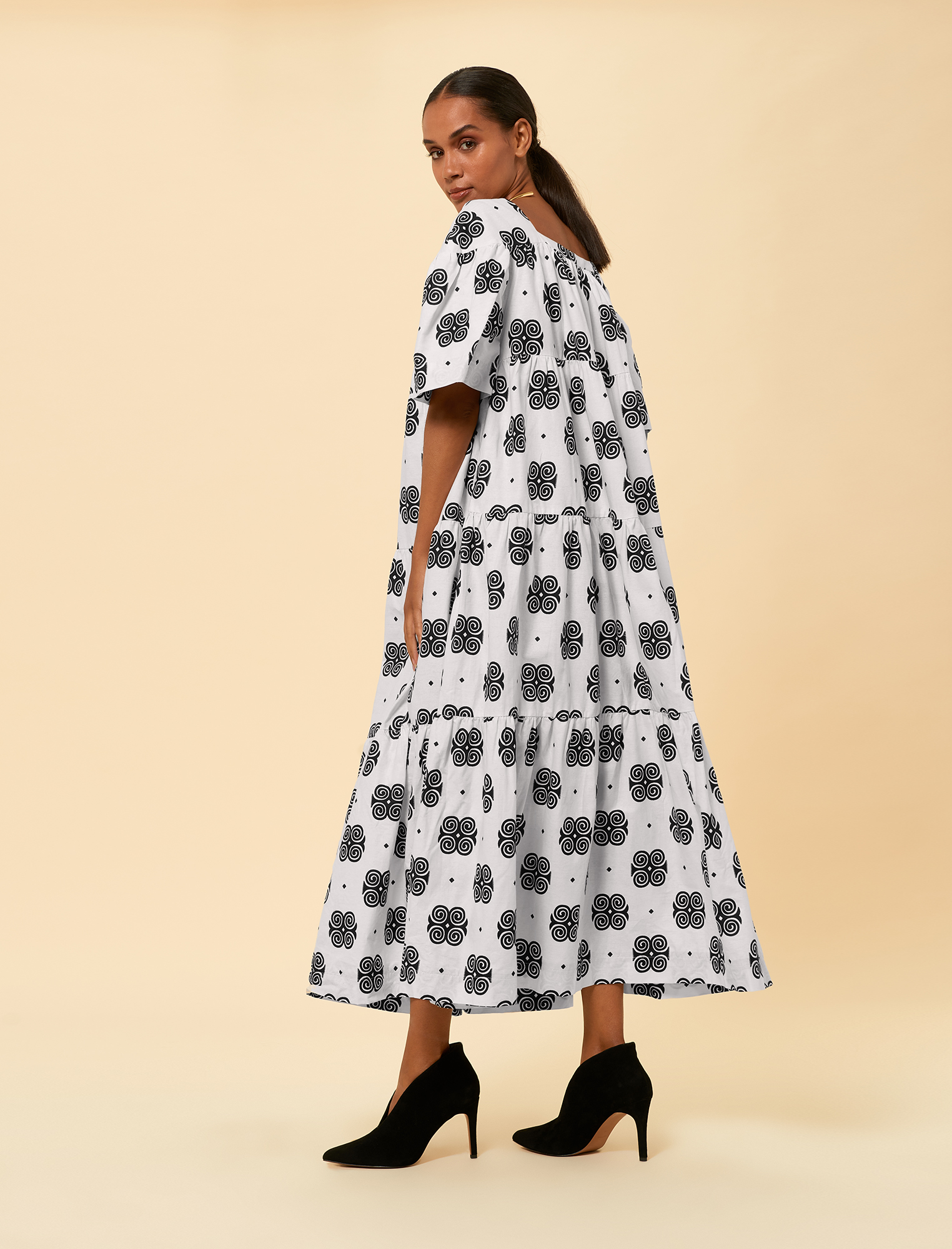 Our tiered flounce dress gives a wavy, floaty feel with short sleeves and a round neck for a look that can be rocked year-round.