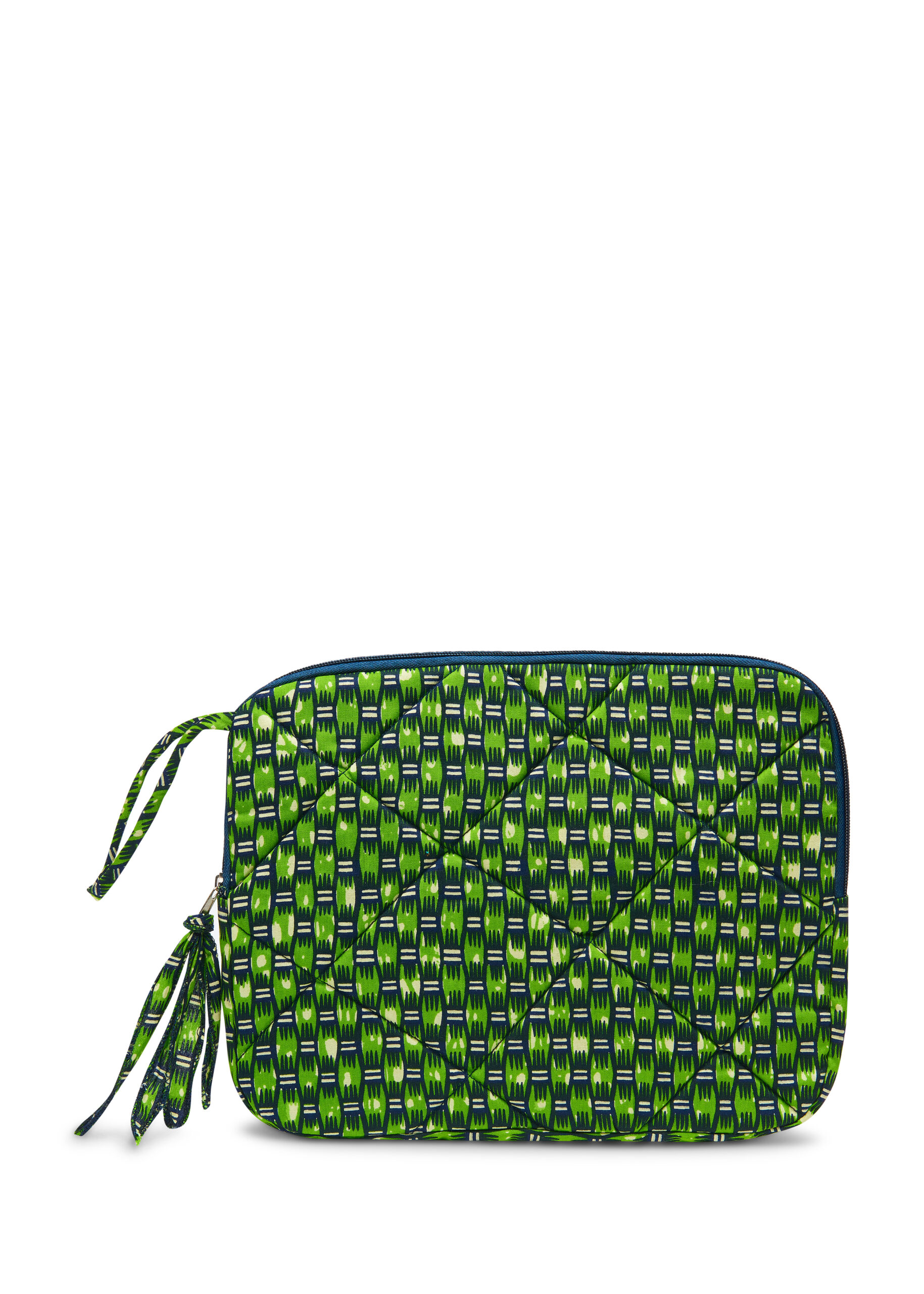 Our vibrant laptop case is designed for those who appreciate a blend of style and functionality. The exterior showcases a dynamic pattern of bold motifs, offering a visually striking look. The quilted design not only adds texture but also provides enhanced protection for your device.