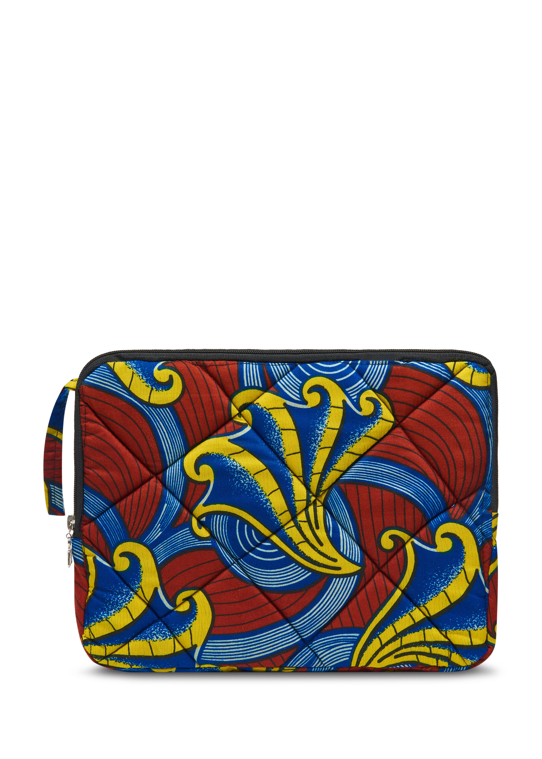 Our vibrant laptop case is designed for those who appreciate a blend of style and functionality. The exterior showcases a dynamic pattern of bold motifs, offering a visually striking look. The quilted design not only adds texture but also provides enhanced protection for your device.