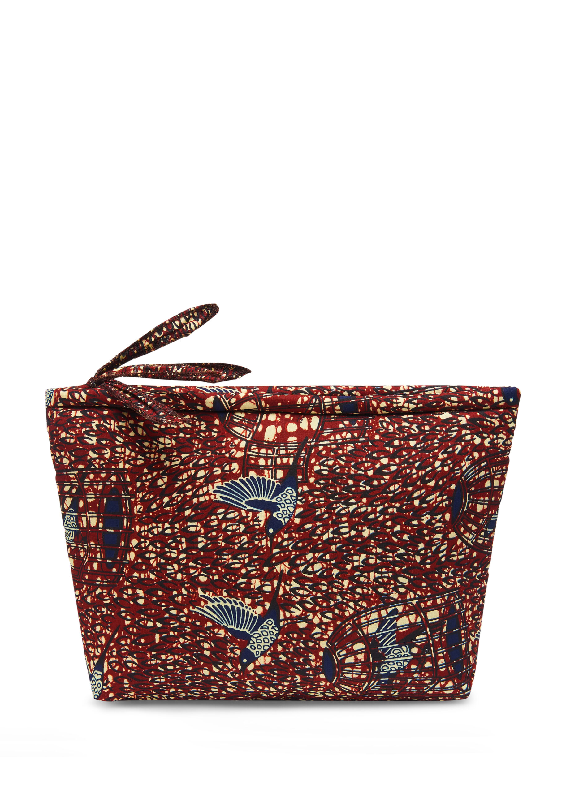 - Print and Colour: The exterior features an intricate red and cream design with abstract patterns and small blue accents. This captivating print adds a unique and artistic touch to the bag.