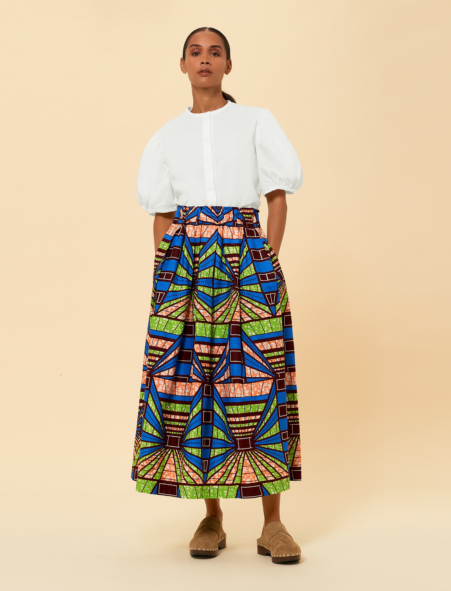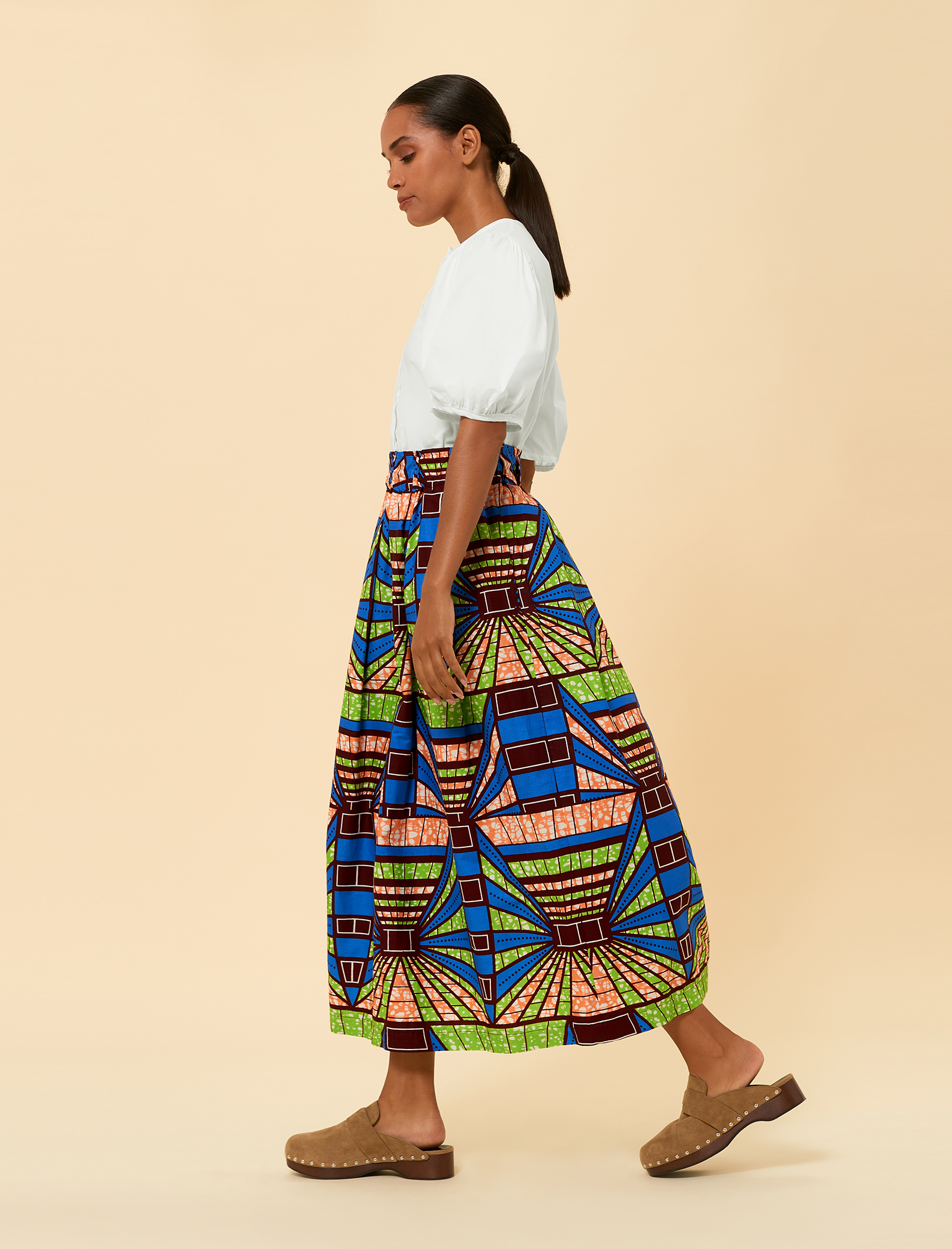 This maxi skirt creates a chic silhouette and can be paired with a plain t-shirt as a statement piece or a clashing print as a celebration of boldness